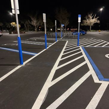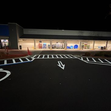 We offer excellent Design and Layout / Marking Services, ensuring our striping and pavement markings are meeting local standards. Signage and sealcoat also available.